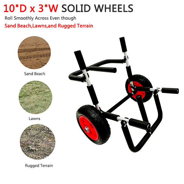 Le chariot à double pagaie offre une polyvalence avec diverses options de roues pour répondre à vos besoins spécifiques. Choisissez parmi des roues pneumatiques, des roues en PU sans crevaison ou des roues ballon. La taille des roues de 10 pouces garantit la stabilité et la fluidité des mouvements, même sur des terrains accidentés. Les roues pneumatiques excellent sur les terrains accidentés, tandis que les roues en PU sans crevaison sont idéales pour les surfaces lisses. Pour une maniabilité exceptionnelle sur le sable mou, les roues ballon offrent une flottabilité supplémentaire.